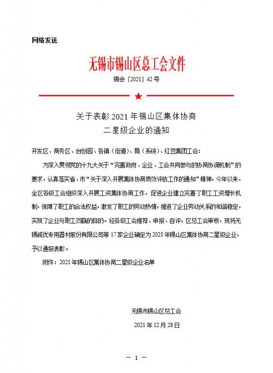 锡山区集体协商二星级企业