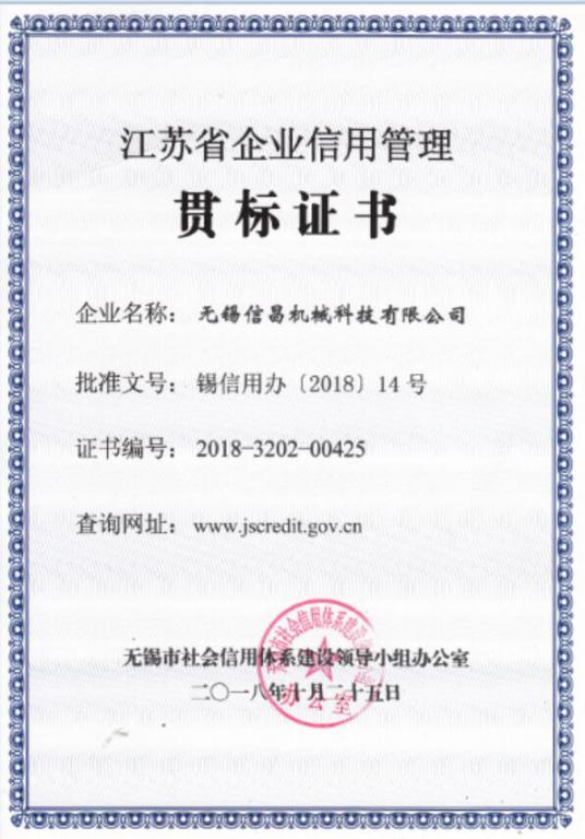 江苏省企业信用管理贯标证书